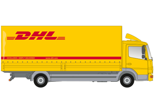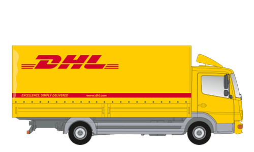 FahrerhausStreamSpace, Ginstergelb (MB 1212) mit DHL oder Deutsche-Post-Firmenbeschriftung